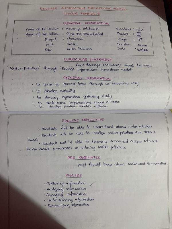My innovative lesson plan was a lesson plan model developed by me to teach the general topics and i titled it as ‘ THE REVERSE INFORMATION BREAKDOWN MODEL’.