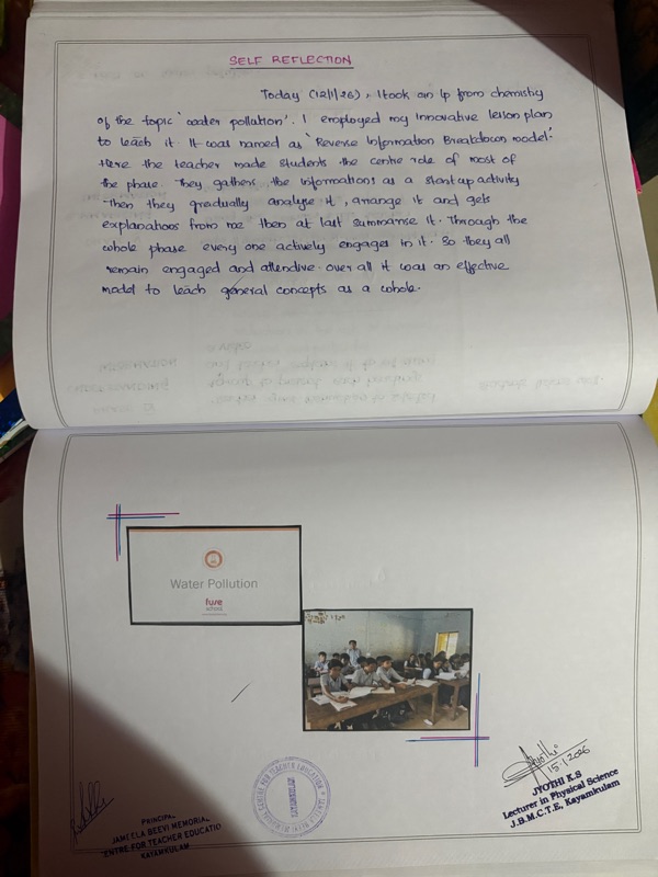 As the part of our B.Ed programme , my school internship - phase 1 has kickstarted on July 16 . I was assigned to Govt. HSS Valiyazheekal. There I was taking physics and Chemistry classes for standard VIII. " In learning you will teach, and in teaching you will learn.” – Phil Collins On day 01 ; 16/07/2025 We ( me and Surabhi ) arrived at the school by 9.15 am , met HM and signed our attendance. We were given a place in the staffroom to settle down. On the first day itself we both had classes. I took a physics⚛️ lesson using a model(CAM). It was a very noisy class with a strength of about 53 students. Somehow I survived my first day ๐ . On day 02 ; 17/07/2025 we signed our attendance by 9.30 am . Then we went to the staffroom. That day my period was during the 2nd hour and I went to my class , taken 2 lessons from chemistry⚗️. I managed to make them attentive for the whole class . After that I went back and done my usual works . By 4.15 we left there. On day 3 ; 18/07/2025 It wa...